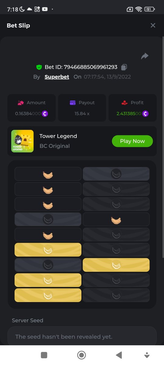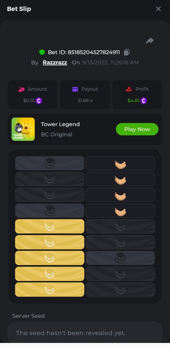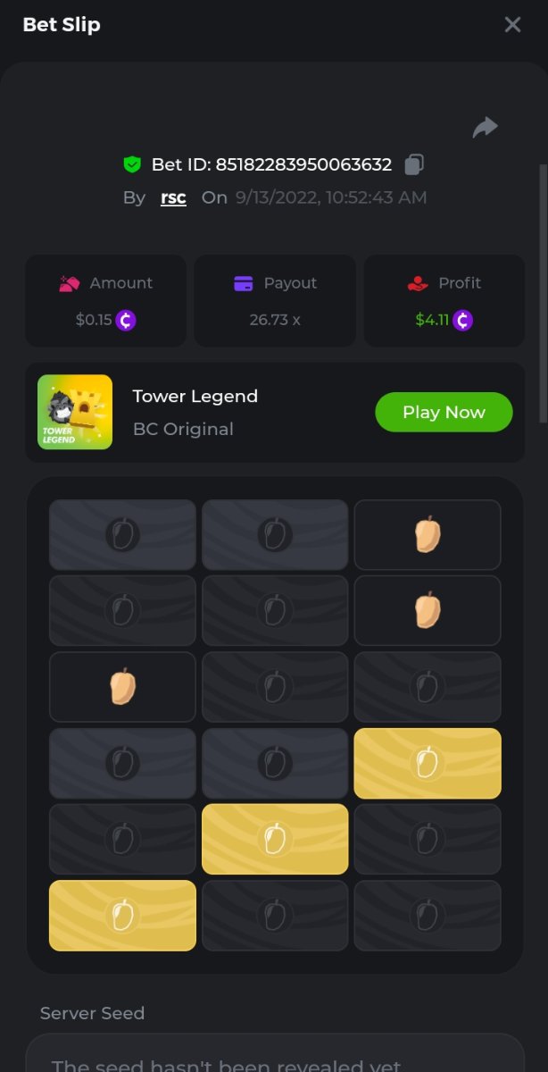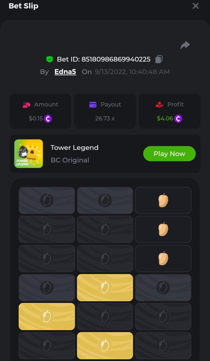 Event Team Niobium Posted September 12, 2022 Event Team Share Posted September 12, 2022 $2.5k Prestige Tower Legend Challenge #46 ♜ Starts: 12, September 8:30pm GMTEnds: 19, September 8:30pm GMT Hello VIPs! Our weekly event is back and better than ever, so get ready to play some Tower Legend! The Top 10 players of the week will receive a major reward, and other participants will also get rewarded for their efforts! But that's not all, anyone who completes the extra bounty will receive an equal share of the $500 prize pool. Come join us, have some fun, and maybe you'll end up at the Top! — More details are given further on. What's the Challenge? Win the highest multiplier you can on BC.Game's in-house game, Tower Legend. (Any difficulty is valid). If there is a tie, the player with the higher average bet amount (in USD) shall be the winner. If there is a tie in the amount and payout, the one who posted or edited his post first will be considered in the Ranking. Minimum VIP There's no minimum VIP level Minimum Payouts Minimum payout to qualify is 15x Minimum Bet Size $0.15 USD equivalent Eligible Coins All cryptocurrencies are eligible (excepting JB) Available Prizes 1st Place....... $500 2nd Place..... $300 3rd Place...... $200 4th Place......$100 5th Place......$50 6th-10th.........$30 All other participants.........$700 Bounty Prize...$500, equal share. EXTRA BOUNTY Post a winning bet with 253.44x multiplier or above and receive an equal share of the $500 prize pool! Original rules apply with all minimum requirements. How to Enter To enter, copy the link of the bet you'd like to submit. Once you've copied it, paste it as a reply to this thread like so: Link: https://bc.game/sd/?sd=10SURLKVEOZRPV In the same post, upload a screenshot of your win by clicking the game ID WITH VIEW IN USD mode ENABLED (accessible at the bottom of dropdown menu for your wallet up top. This way, we can ensure that your bet indeed met the minimum requirement at the time of placing it: Link: https://bc.game/sd/?sd=10SURLKVEOZRPV Please combine all of your hits together in a SINGLE post. Edit your existing post for additional hits, don't create a new post. Each eligible entry must have the Bet Slip URL, failure to include it will disqualify participation in the event. Bet Slip image is not mandatory. Bets must be posted within 24 hours of placing bet in order to keep things fair for everyone. Bets must be made during the specified time window stated above. This thread will lock automatically when the time period is over. One (1) entry per household. Anyone found attempting to win multiple prizes will be disqualified from this challenge as well as all future challenges. Failure to follow instructions will result in your submission being null and void. By entering this challenge, you acknowledge that BC.Game has the final decision on results and placement. Payouts will be made within 72 hours of challenge completion, please be patient, we promise you that we haven't forgotten. We check and double check to make sure the rightful winners receive their prize. Prizes will be paid out in BCD. Good luck everyone! Link to comment Share on other sites More sharing options...