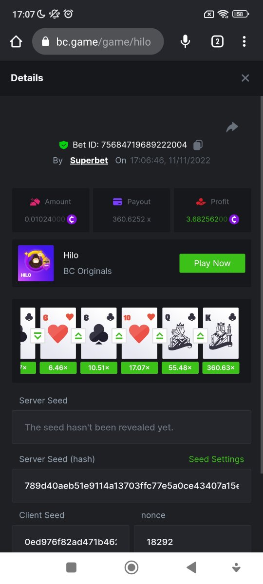 Black Tiger Posted November 11, 2022 Share Posted November 11, 2022 Read Carefully Before Start To Hunt Daily Challenges #66: HILOHunt :Win the highest pay outMin Payout requirement 100xMin Level 4️Duration Starting : Now End time : 23.59 UTC Time How to Join? Make screenshot + paste your bet link + UID or profile link Mini bet amount - 0.01$ Any coin allowedReward Prizes 1st Place....... $7 BCD2nd Place..... $5 BCD3rd Place...... $4 BCD 🎖4th Place......$3 BCD5th - 10th Place......$1 BCD 🏵 Winners will be announcing next day after Roll Point 1 Link to comment Share on other sites More sharing options...