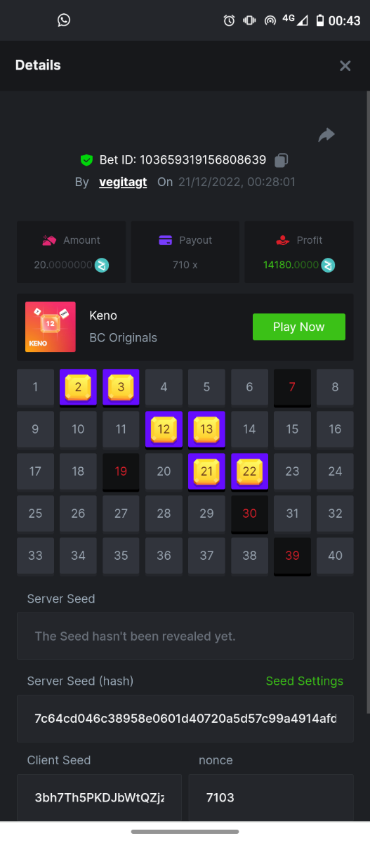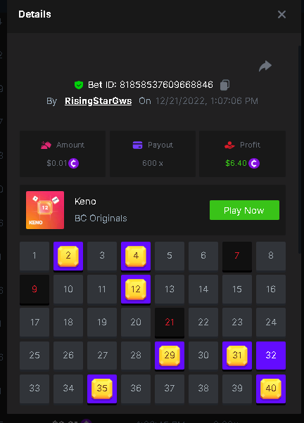 Black Tiger Posted December 21, 2022 Share Posted December 21, 2022 Read Carefully Before Start To Hunt Daily Challenges #106 : KENOHunt :Win the highest pay outMin Payout requirement 100xMin Level 4️Duration Starting : Now End time : 23.59 UTC Time How to Join? Make screenshot + paste your bet link + UID or Profile link Mini bet amount - 0.01$ Any coin allowedReward Prizes 1st Place....... $7 BCD2nd Place..... $5 BCD3rd Place...... $4 BCD 🎖4th Place......$3 BCD5th-10th Place......$1 BCD 🏵 Winners will be announcing next day after Roll Point 1 Link to comment Share on other sites More sharing options...