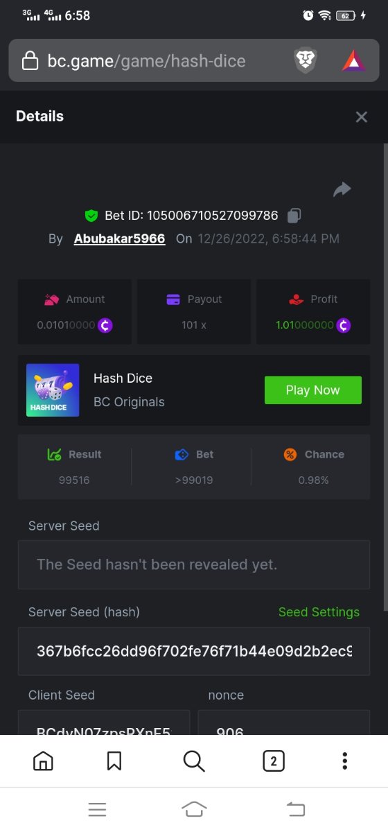 Black Tiger Posted December 26, 2022 Share Posted December 26, 2022 Read Carefully Before Start To Hunt Daily Challenges #111 : Hash DiceHunt :Win the highest pay outMin Payout requirement 100xMin Level 4️Duration Starting : Now End time : 23.59 UTC Time How to Join? Make screenshot + paste your bet link + UID or Profile link Mini bet amount - 0.01$ Any coin allowedReward Prizes 1st Place....... $7 BCD2nd Place..... $5 BCD3rd Place...... $4 BCD 🎖4th Place......$3 BCD5th - 10th Place......$1 BCD 🏵 Winners will be announcing next day after Roll Point 1 Link to comment Share on other sites More sharing options...