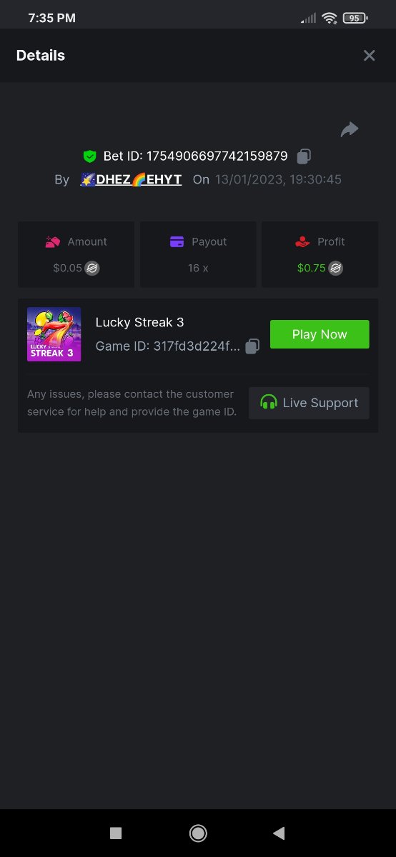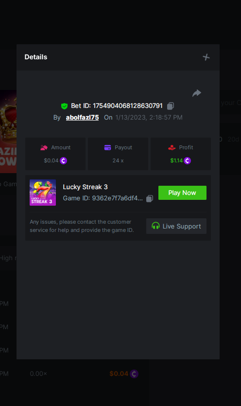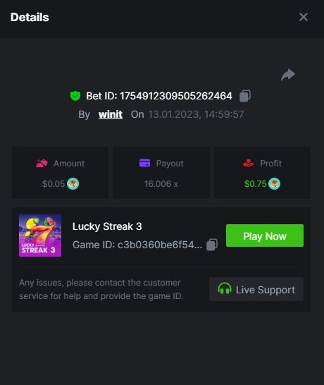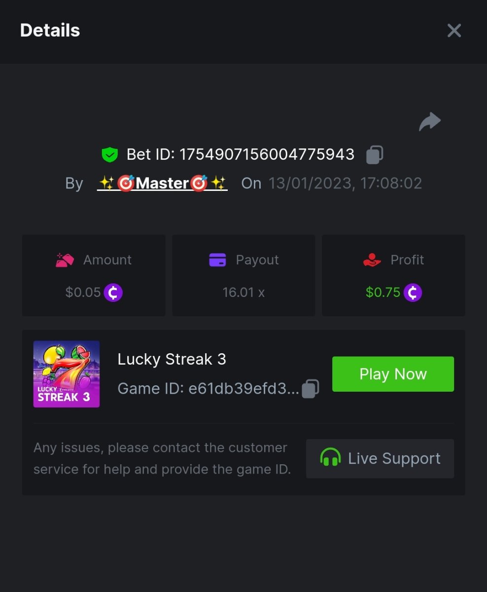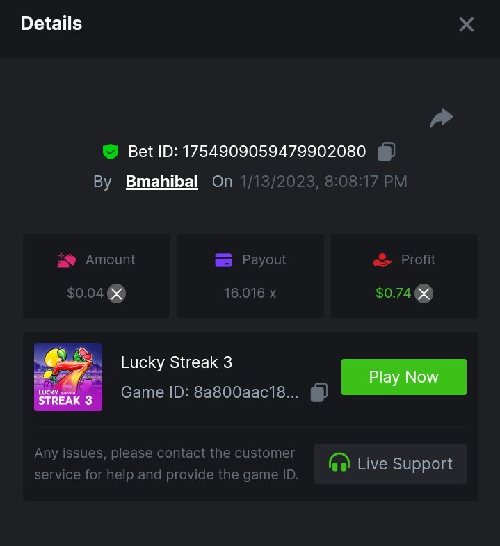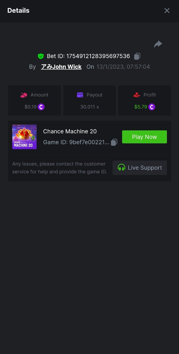 ToughLuck Posted January 13, 2023 Share Posted January 13, 2023 Lucky Streak 3 16 x https://bc.game/#/sd/111ATF306SJCIB Chance Machine 20 21 x https://bc.game/#/sd/111ATB1FMJ32MR Twerk 27.41 x https://bc.game/#/sd/111ATT55WB1QFN Link to comment Share on other sites More sharing options...
