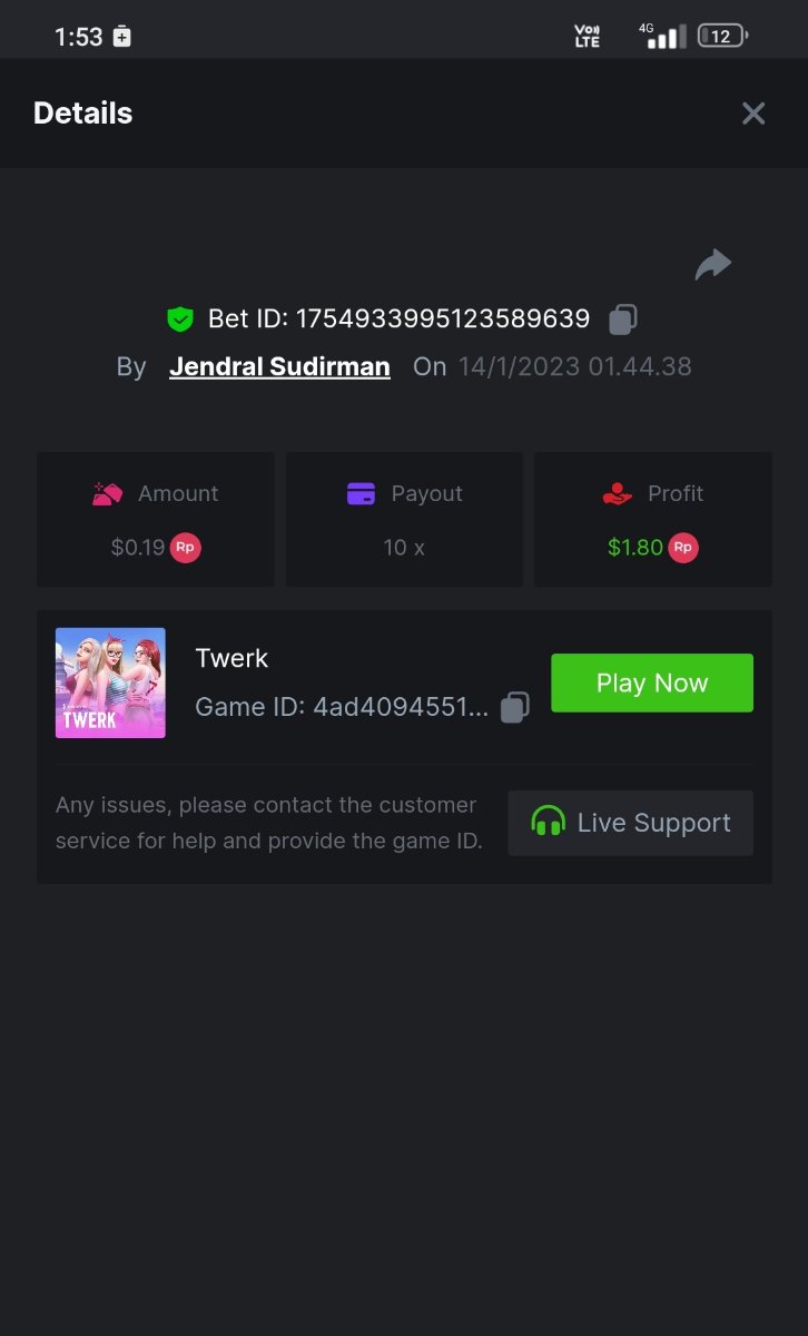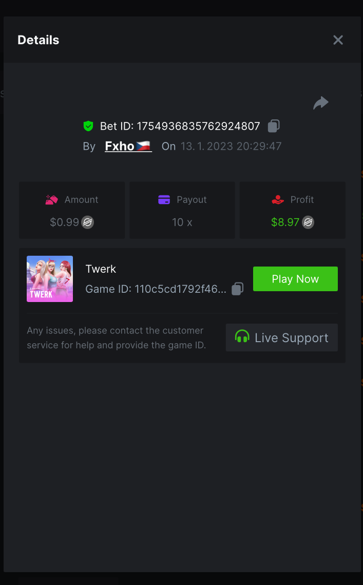 • في نفس المنشور ، قم بتحميل لقطة شاشة لفوزك بالنقر فوق معرف اللعبة مع عرض في وضع الدولار الأمريكي (يمكن الوصول إليه في أسفل  القائمة المنسدلة لأعلى محفظتك ، وإرسال رد. تم! بهذه الطريقة ، يمكننا التأكد من أن يفي الرهان بالفعل بالحد الأدنى من المتطلبات في وقت وضعه: