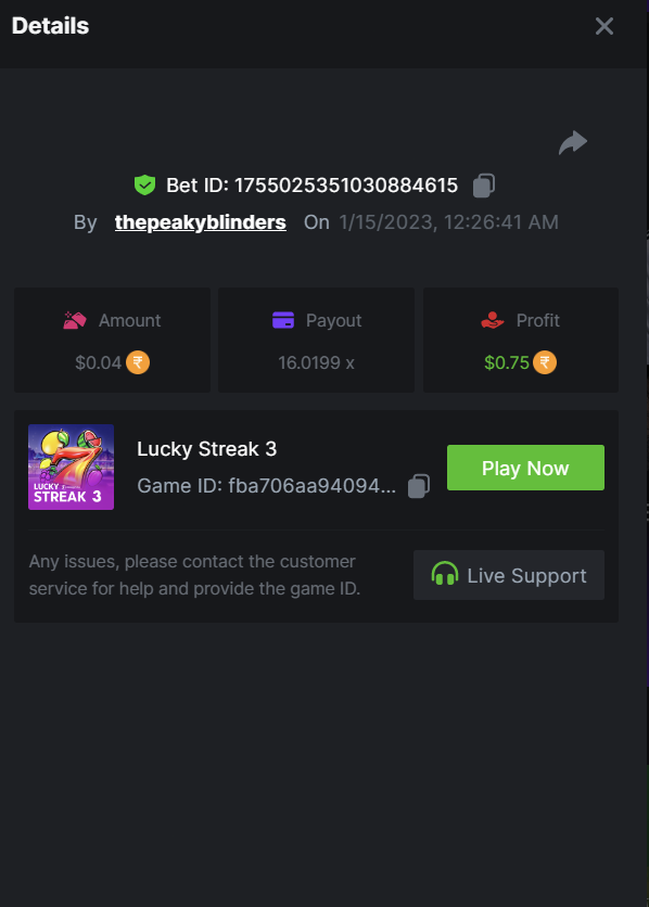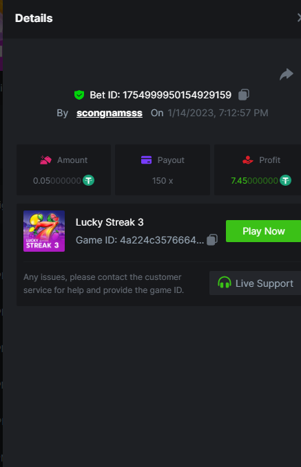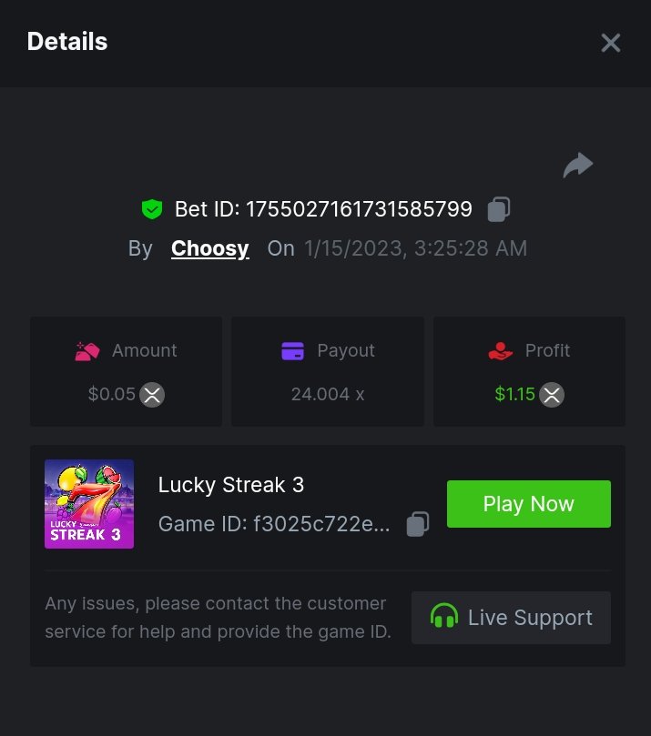 MeninaDtrap Posted January 14, 2023 Share Posted January 14, 2023 Lucky streak 3. https://hash.game/#/sd/111D9M6QMW69LF 150.30x $0.20 bet Machine 40 https://hash.game/#/sd/111DA3ADU08WLV 50x $0.40 bet Safari https://hash.game/#/sd/111EHI8CKWTNV7 611.92x $0.50 bet twerk https://hash.game/#/sd/111GK0MCCOOB9V 95.59x $0.20 bet chance machine 20 https://hash.game/#/sd/111IZXZUUSAAZ7 42.01x $0.40 bet Link to comment Share on other sites More sharing options...