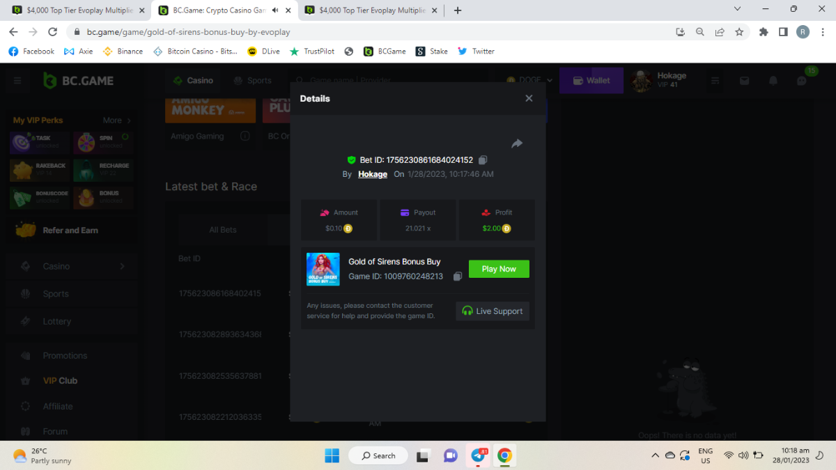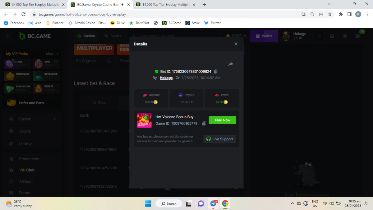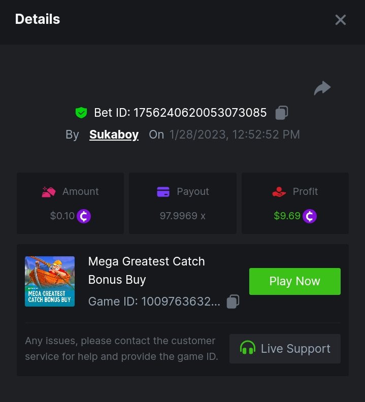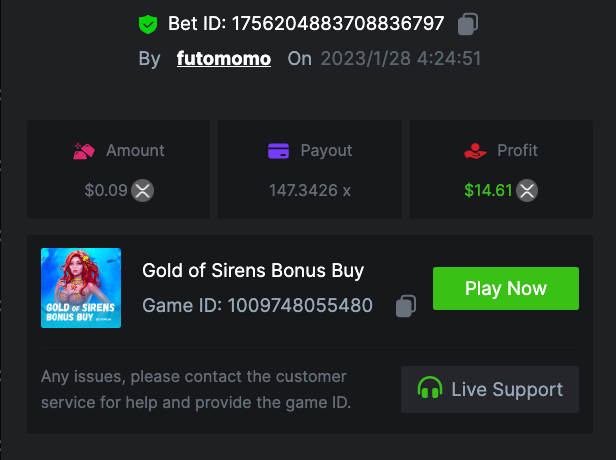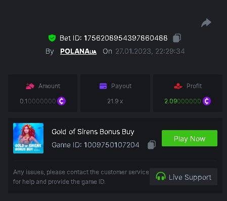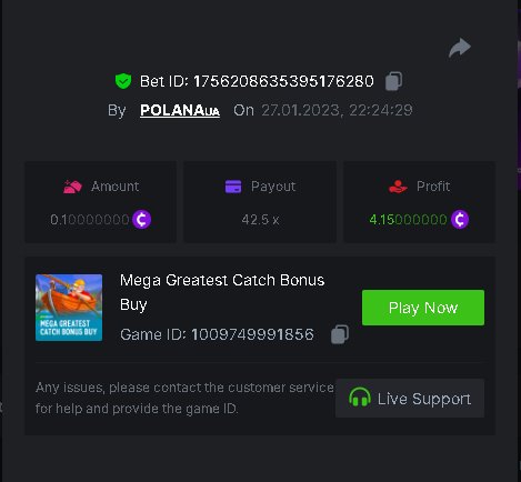 BC_Raikage Posted January 28, 2023 Share Posted January 28, 2023 Mega Greatest Catch Bonus buy - 20.00x https://bc.game/#/sd/112AURWPZIAVWZ Hot Volcano Bonus buy - 22.02x https://bc.game/#/sd/112AV3J61JWRO3 Gold Of Sirens bonus buy - 21.02x https://bc.game/#/sd/112AV9N60LFI8J Magic Wheel - $0.10 Inner Fire bonus buy - 25.03x https://bc.game/#/sd/112AWTO3X67X8Z Hot Triple Seven Special - 12.01x https://bc.game/#/sd/112AWYWR22PUS3 Patricks Magic Field - 18.59x https://bc.game/#/sd/112AXA0SIVDZWZ Rueda De Chile Bonus Buy - 17.02x https://bc.game/#/sd/112AXI2RXLIUXF Massive Luck - 28.13x https://bc.game/#/sd/112AXUWKOIDMOJ Juicy Gems Bonus Buy - 10.01x https://bc.game/#/sd/112AY4YA1UA13N Link to comment Share on other sites More sharing options...