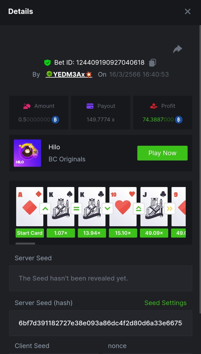 Chawee956 Posted March 16, 2023 Share Posted March 16, 2023 36 minutes ago, Maksypro said: Read Carefully Before Start To Hunt Daily Challenges #176 HI-LO Hunt : Win the highest pay out Min Payout requirement X100 Min Level 4 ๏ธDuration Starting : Now End time : 23.59 UTC Time How to Join? Make screenshot + paste your bet link + UID or Profile link Mini bet amount - 0.01$ Any coin allowed Reward Prizes 1st Place.....$7 BCD 2nd Place.....$5 BCD 3rd Place.....$4 BCD 4th Place.....$3 BCD 5th Place.....$2 BCD ๐ต Winners will be announcing next day after Roll Point! 2155834 ย ย Chawee956 User Id: 2155834 Link to comment Share on other sites More sharing options...