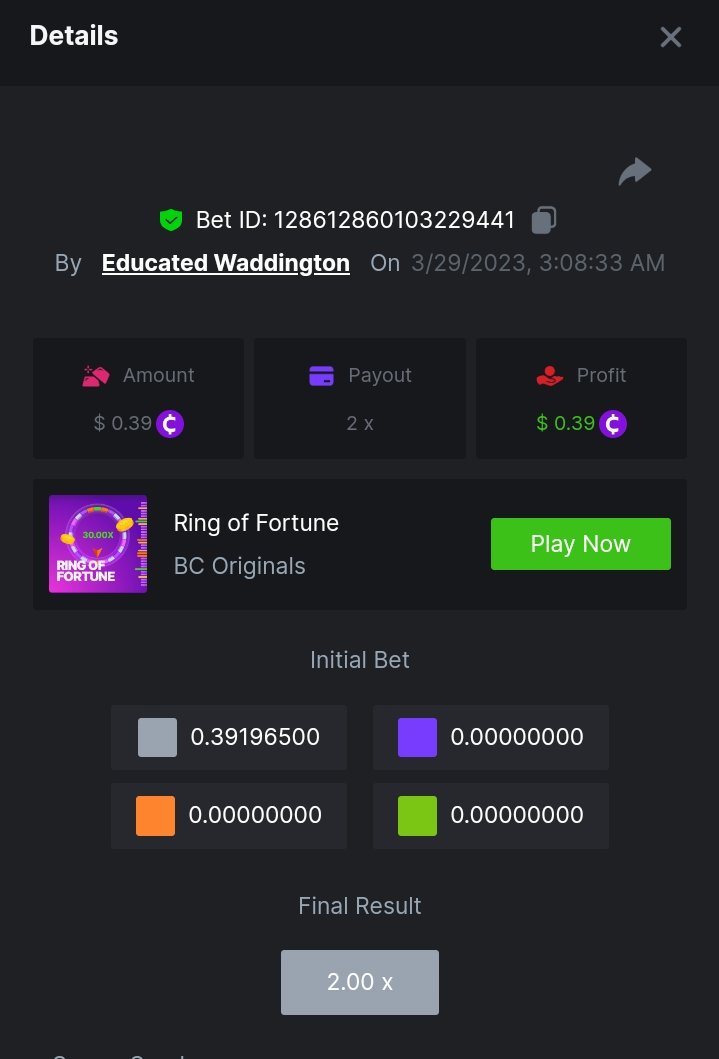 Saaho2022 Posted March 29, 2023 Share Posted March 29, 2023 99x - https://bc.game/#/sd/116HPMHCWBJX8Z 6x - https://bc.game/#/sd/116HQZ8FW8OI6R 3x - https://bc.game/#/sd/116HQSDYA5BDOZ 2x - https://bc.game/#/sd/116J9QY9XFQUC3 Link to comment Share on other sites More sharing options...