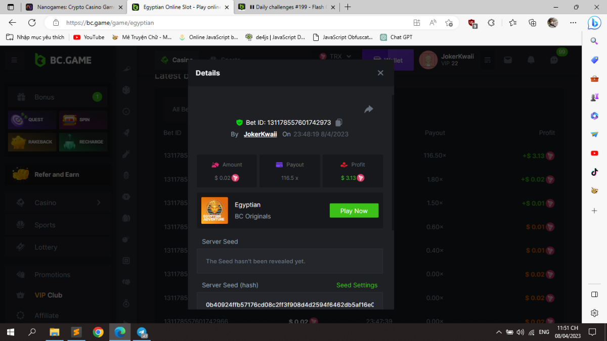 Maksypro Posted April 8, 2023 Share Posted April 8, 2023 Read Carefully Before Start To Hunt Daily Challenges #199 EGYPTIAN ADVENTURE Hunt : Win the highest multiplier Min Multiplier requirement 100x Min Level 4 ️Duration Starting : Now End time : 23.59 UTC Time How to Join? Make screenshot + paste your bet link + UID or Profile link Any coin, with min bet 0.01 USD is allowed (jb/bb/bcl not allowed) Reward Prizes 1st Place.....$7 BCD 2nd Place.....$5 BCD 3rd Place.....$4 BCD 4th Place.....$3 BCD 5th Place.....$2 BCD 🏵 Winners will be announcing next day after Roll Point! 1 Link to comment Share on other sites More sharing options...
