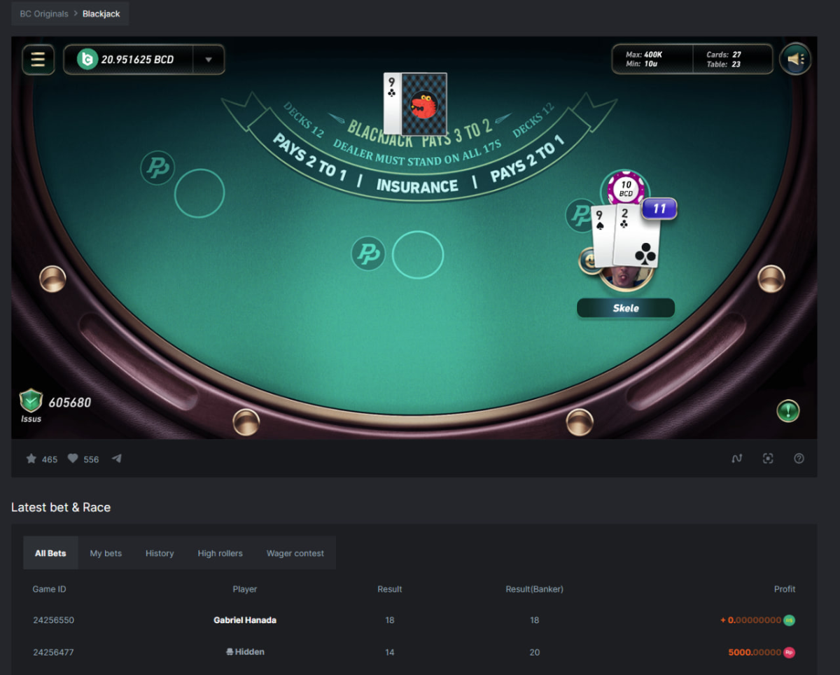 Becareful if you play the in house blackjack. I have lost twice because of a bug i found and it always seems to happen on the larger bets. and also the ordering on the cards seemed off between my screen shot of the game and the validated bet.