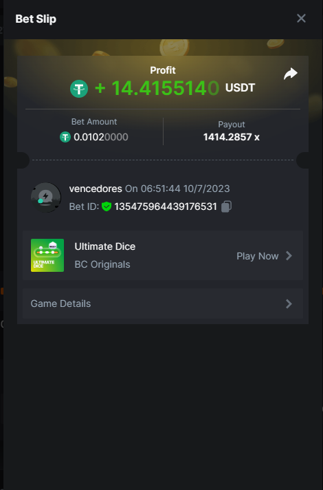 Moderator Giandreas Posted July 9, 2023 Moderator Share Posted July 9, 2023 Read Carefully Before Start To Hunt Forum Daily Challenges #291 Ultimate Dice Hunt : Win the highest pay out Min Payout requirement 40x Min Level 4 ️Duration Starting : Now End time : 23.59 UTC Time How to Join? Make screenshot + paste your bet link + UID or Profile link Any coin, with min bet 0.01 USD is allowed (jb/bb/bcl not allowed) Reward Prizes 1st Place.....$7 BCD 2nd Place.....$5 BCD 3rd Place.....$4 BCD 4th Place.....$3 BCD 5th Place.....$2 BCD 🏵 Winners will be announcing next day after Roll Point! Link to comment Share on other sites More sharing options...