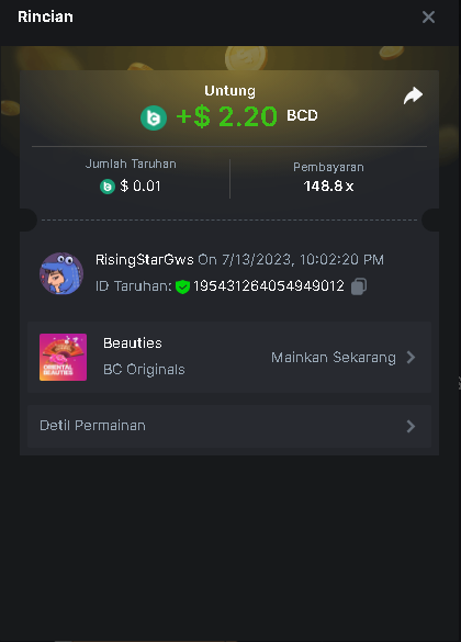 🥈2nd place . . . .  5$ BCD  - RisingStarGws - 148.8x