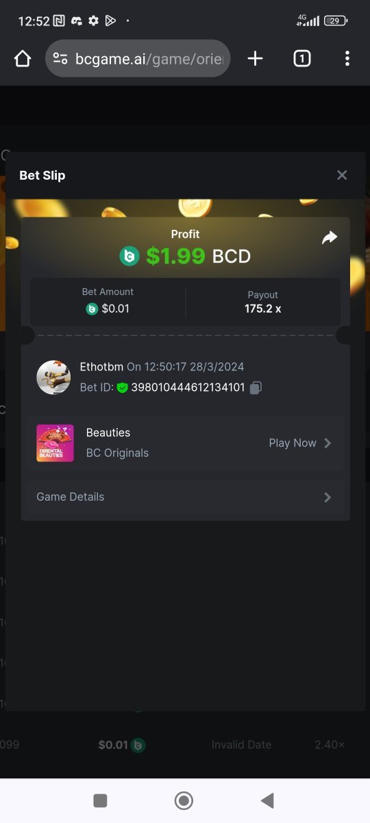 Moderator Giandreas Posted March 28, 2024 Moderator Share Posted March 28, 2024 Read Carefully Before Start To Hunt Forum Daily Challenges #553Hunt : Oriental Beauties Win the highest pay out Min Payout : 20x Min Level 10️Duration Starting : Now End time : 23.59 UTC Time How to Join? Make screenshot + paste your bet link + UID or Profile link Any coin, with min bet 0.01 USD is allowed (jb/bb/bcl not allowed)Reward Prizes 1st Place.....$7 BCD 2nd Place.....$5 BCD 3rd Place.....$4 BCD 4th Place.....$3 BCD 5th Place.....$2 BCD 🏵 Winners will be announcing next day after Roll Point! 1 Link to comment Share on other sites More sharing options...