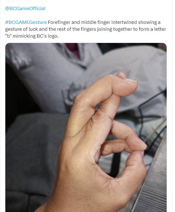 Torrentsoul8 Posted May 13, 2024 Share Posted May 13, 2024 <blockquote class="twitter-tweet"><p lang="en" dir="ltr"><a href="https://twitter.com/hashtag/BCGAMEGesture?src=hash&ref_src=twsrc%5Etfw">#BCGAMEGesture</a><br><br>A gesture combining the thumbs up with the crossing of fingers for luck. Better luck at BC Game than any other crypto casino platform! <a href="https://t.co/JN2W6tL22K">pic.twitter.com/JN2W6tL22K</a></p>— Chopsooy (@CholettR) <a href="https://twitter.com/CholettR/status/1789886545035448686?ref_src=twsrc%5Etfw">May 13, 2024</a></blockquote> <script async src="https://platform.twitter.com/widgets.js" charset="utf-8"></script> https://x.com/CholettR/status/1789886545035448686 A gesture combining the thumbs up with the crossing of fingers for luck. Better luck at BC Game than any other crypto casino platform! 1 Link to comment Share on other sites More sharing options...