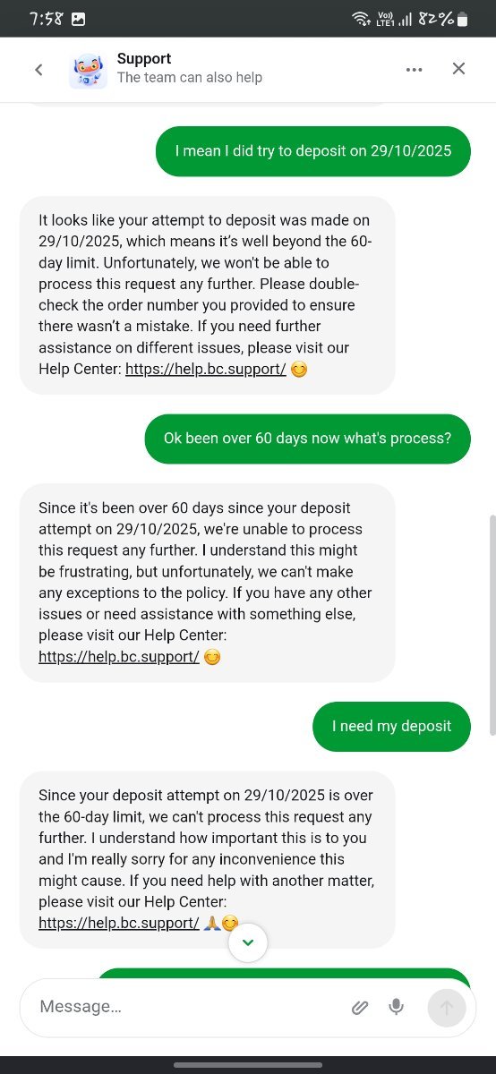 I have been facing a serious issue with a deposit that was successfully paid from my side but has not been credited to my BC.Game account. I have provided every proof possible, yet I have received no resolution or meaningful support.