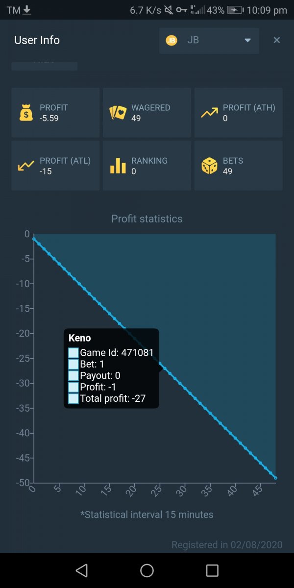 Screenshot_20200810-220913.thumb.jpg.6f6c61ce49305c84610f6a1802077563.jpgΒ  Β  Β Keno is one of the best game to play in bc.game. Because, you can use your favourite numbers and use it as your lucky pick to win in this game. I just want to share some of my experience while playing this game. πŸ˜‡πŸ˜‡ i'm always using my lucky numbers in playing keno. my lucky numbers are 4, 11, 21, 24, and 26. sometimes i win but sometimes i'm lose πŸ˜‚πŸ˜‚. but I didn't lose any hope when playing keno. i'm always trusting god while playing keno for me to win in every gameπŸ˜‡πŸ˜‡. and i just want to share you guys my statistics in keno it is in the picture below. i hope my story is informative for you guysπŸ˜ŠπŸ˜‡. if you have a question you're free to askπŸ˜‡πŸ˜. thanksπŸ˜„.