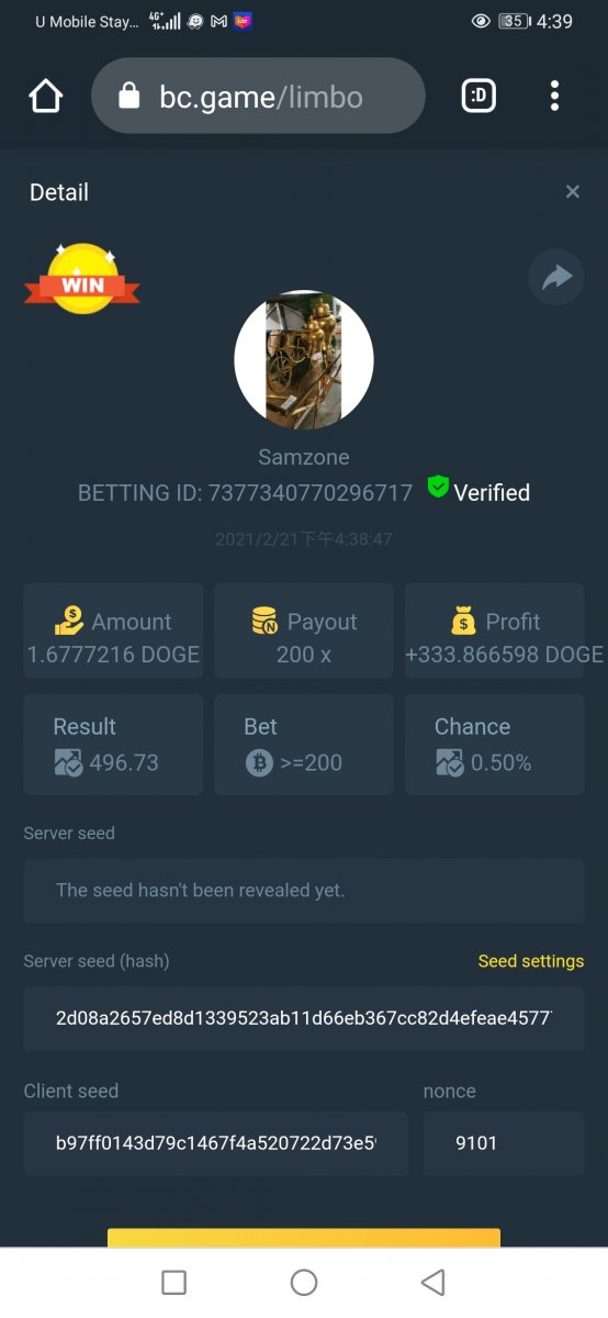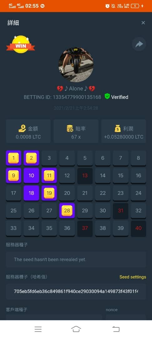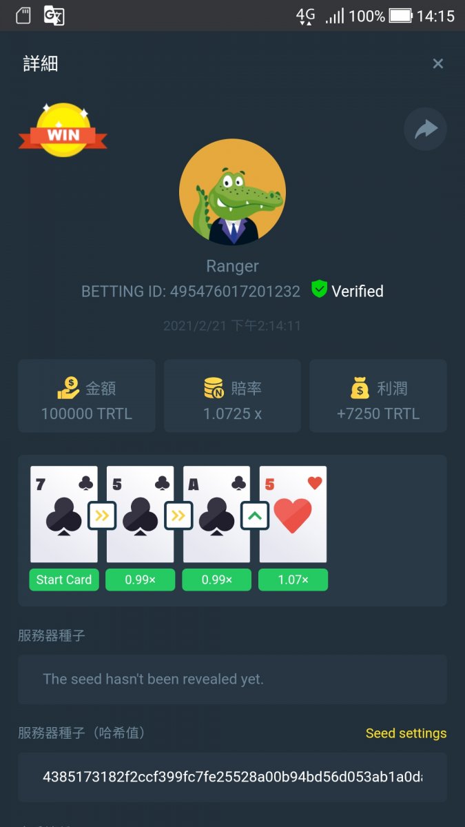 參加方法:回覆這個帖子、並貼上 2021/2/20 至 2021/2/21 18:00 (UTC+8) 之間任何遊戲最大獲利的押注記錄截圖。如果你多次張貼不同的押注截圖、則將以你最大獲利的為主。