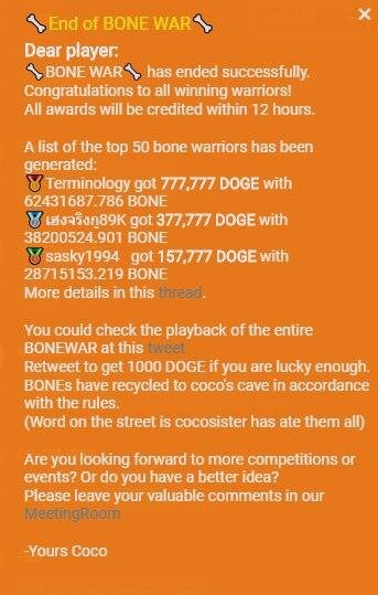 3️⃣The Final Reward will be sended at 7 Jan 00:00 and Bone will be eaten at the same time.