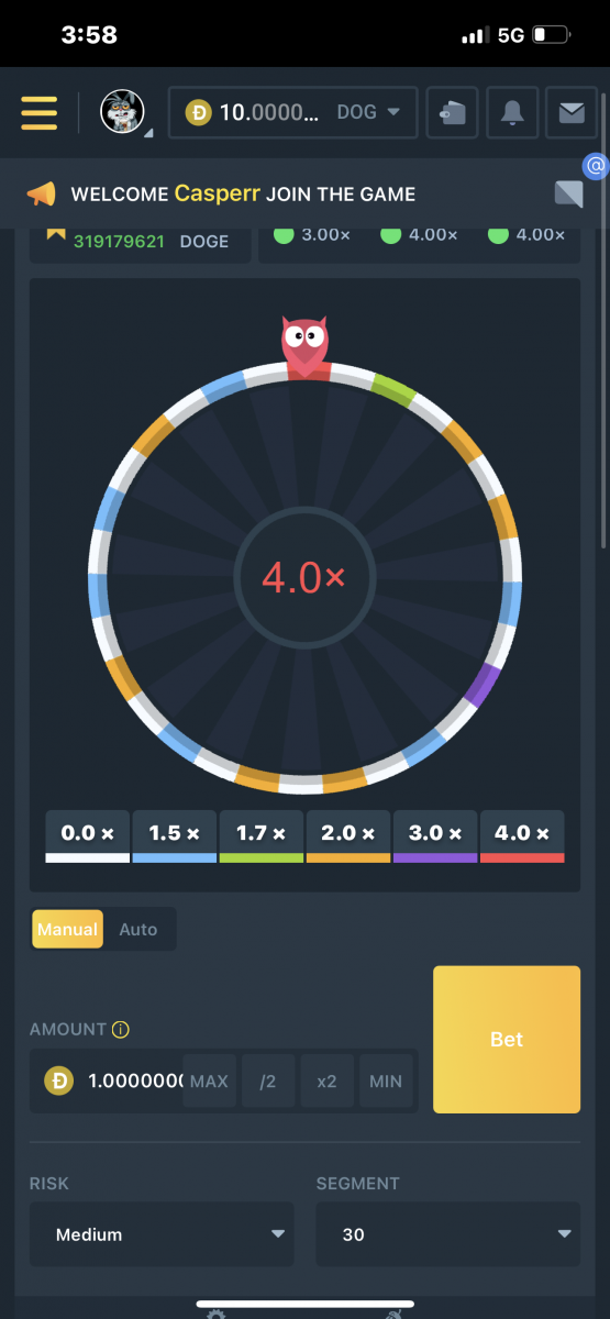 Win 2 or more consecutive bets with 4x on Wheel. Screenshot below for settings: