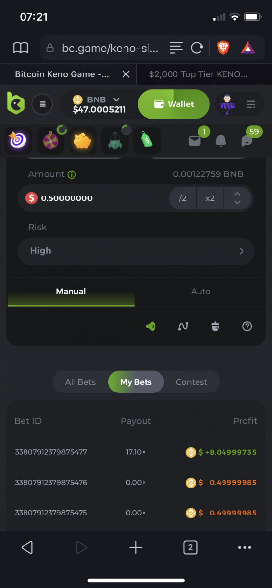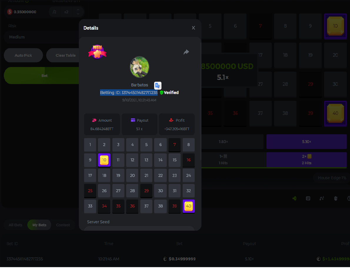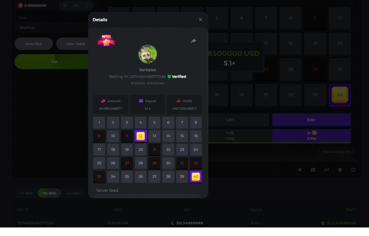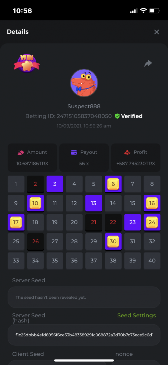 • The payouts must be EXACT hits (56x and 50x are not the same) - if you can't find a payout, try changing the risk level to medium or high.