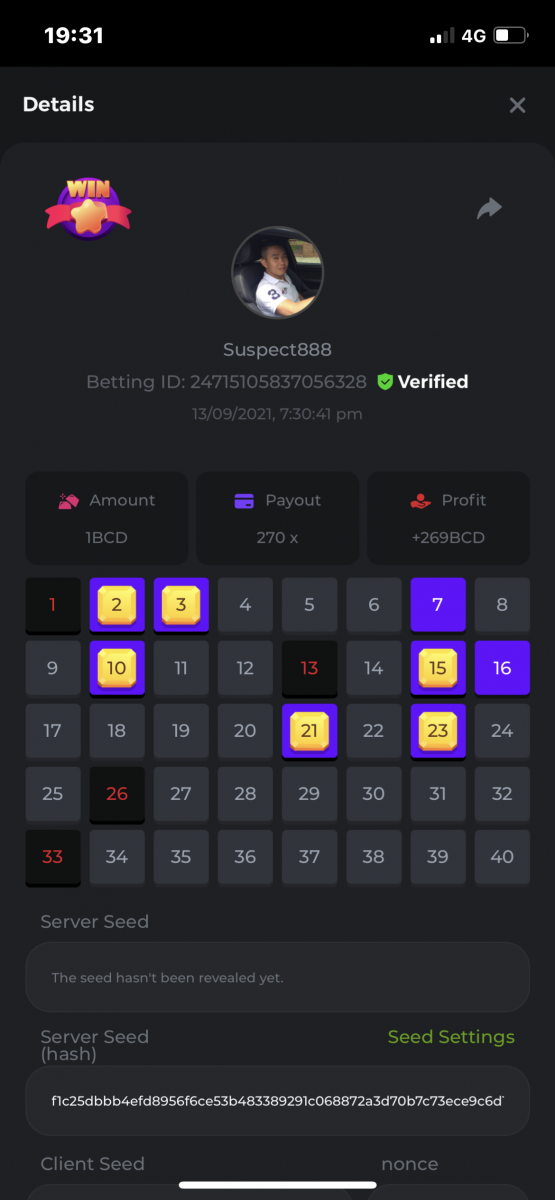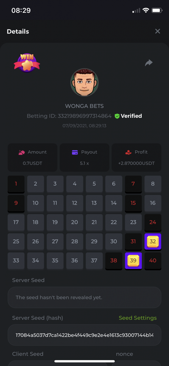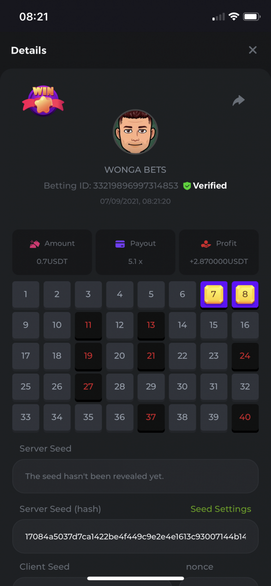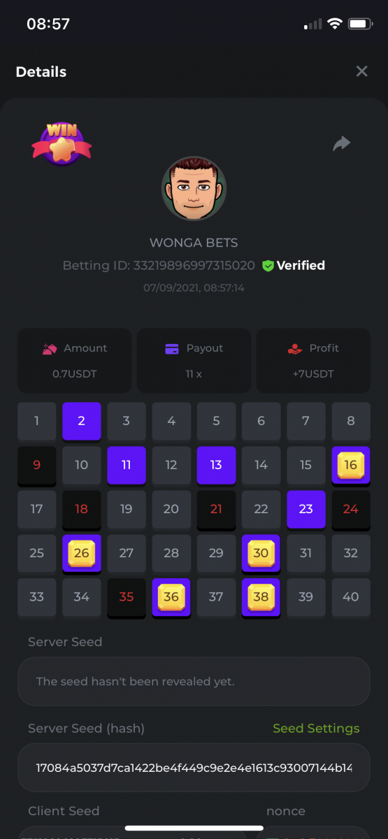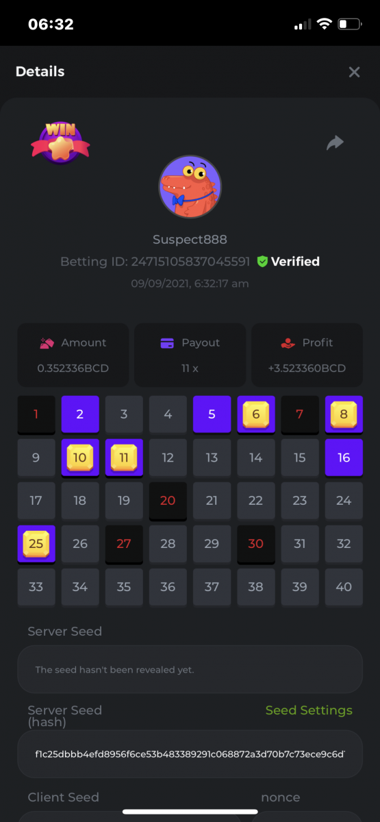 • In the same post, upload a screenshot of your win by clicking the game ID WITH VIEW IN USD mode ENABLED (accessible at the bottom of dropdown menu for your wallet up top. This way, we can ensure that your bet indeed met the minimum requirement at the time of placing it: