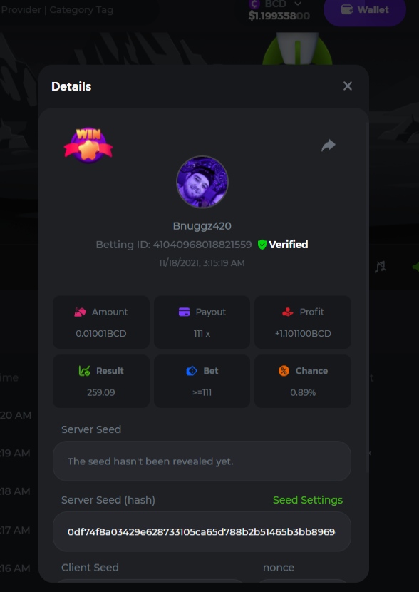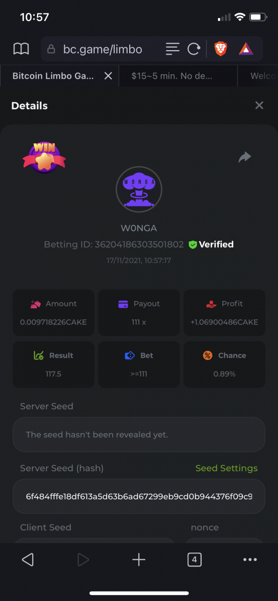 WOUNDED Posted November 16, 2021 Share Posted November 16, 2021 SMALL CHALLENGE #6 Hello all,welcome Every week,along to the prestige & top challenge,we have a side challenge for you We have considered LIMBO game for this week We have prepared a special optionWhoever earns more points this month،will receive a $ 20 prize at the end of the month First place Second place Third place Starts: 21:00, November 16 GMT Ends: 21:00, November 19 GMT What's the Challenge? Earn 111X in limbo Minimum VIP Tier Must be VIP5 or higher in order to enter this challenge. Minimum Bet Size $0.1 USD equivalent (please check the individual coin amounts below) - Bets made below this amount will not count Eligible Coins All coins are eligible (excluding JB) Available Prizes 1......$20 2......$15 3......$10 To enter,copy the bet ID of the bet you'd Once you've copied it,post it as a reply to this thread like so: Betting ID: 40045686657391445 In the same post,upload a screenshot of your win by clicking the game ID WITH VIEW IN USD mode ENABLED (accessible at the bottom of dropdown menu for your wallet up top.this way,we can ensure that your bet indeed met the minimum requirement at the time of placing it The one with the highest base amount wins In a tie,the one who submits the bet faster will be declared the winner Bets must be posted within 24 hours of placing bet in order to keep things fair for everyone Bets must be made during the specified time window stated above. This thread will lock automatically when the time period is over Each user is only allowed with one account Otherwise,the wrongdoer will be dealt with Failure to follow instructions will result in your submission being null and void Payouts will be made within 24 hours of challenge completion,please be patient Let's goGood luck Betting ID: 40045686657391445 Link to comment Share on other sites More sharing options...