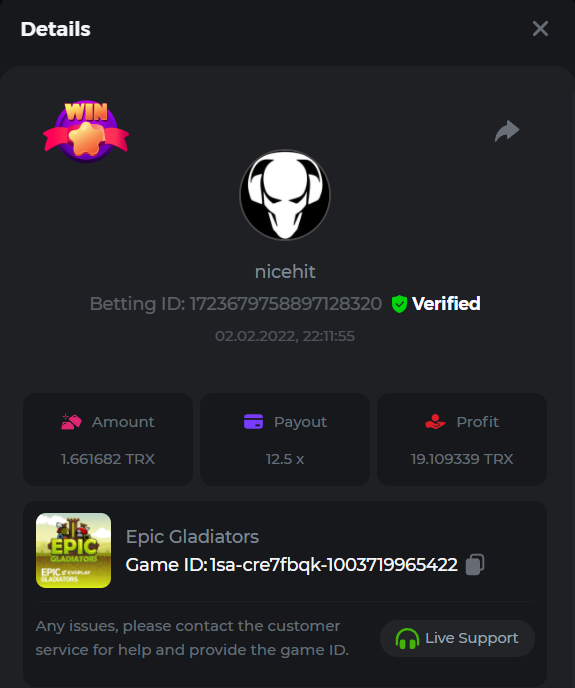 Event Team Niobium Posted February 10, 2022 Author Event Team Share Posted February 10, 2022 Congratulations to the winners of the Evoplay Battle!Β We had 50 valid entries, and 2 players completed the extra bounty. All prizes have been sent!Β Check out the ranking below: Top 50 Participants Ranking Username Prize Extra bonus 1st Hoya_ $500 - 2nd Π€Π»ΠΈΠ½Ρ $250 - 3rd Sleepiez $150 $100 4th Satoshimaker $100 - 5th nssBoB $50 - 6th KG562 $50 - 7th W0NGA $50 - 8th LemaK $50 - 9th Mugen $50 - 10th POLANA $50 - 11th Shamsham99 $12.5 - 12th Mvownz $12.5 - 13th Yhum $12.5 - 14th BLessingGirL05 $12.5 - 15th aifosha $12.5 - 16th Mkulet $12.5 - 17th Elpresidente $12.5 - 18th MaksatMe $12.5 $100 19th Cran $12.5 - 20th Fruitblood $12.5 - 21th narcisyo $12.5 - 22th Nashka $12.5 - 23th jhonncueva $12.5 - 24th RORY $12.5 - 25th Aksyen12 $12.5 - 26th nica19 $12.5 - 27th MundusDivitiarum $12.5 - 28th MAHDI-60 $12.5 - 29th selena42 $12.5 - 30th NORNMAn $12.5 - 31th WooWPoT $12.5 - 32th Crypt0pm $12.5 - 33th skipping $12.5 - 34th CivicMe $12.5 - 35th OhNoooo $12.5 - 36th nicehit $12.5 - 37th Bubbles00 $12.5 - 38th Kristalina $12.5 - 39th _r_0_w3_n_4_ $12.5 - 40th Winsk3y $12.5 - 41th Betmin $12.5 - 42th Kaira_j $12.5 - 43th Capitan11 $12.5 - 44th sanjahimik $12.5 - 45th luckypankaj $12.5 - 46th B0unty $12.5 - 47th bassabar $12.5 - 48th Sonch $12.5 - 49th Mrlove $12.5 - 50th RagEE $12.5 - Check out our official Promos & Events pageΒ here. 2 Link to comment Share on other sites More sharing options...
