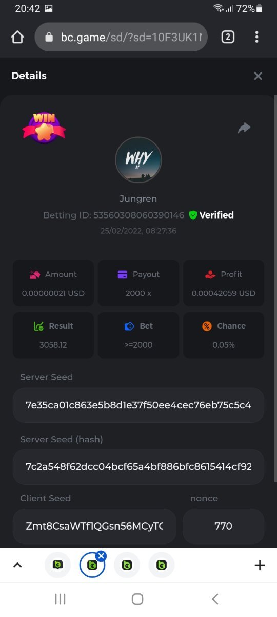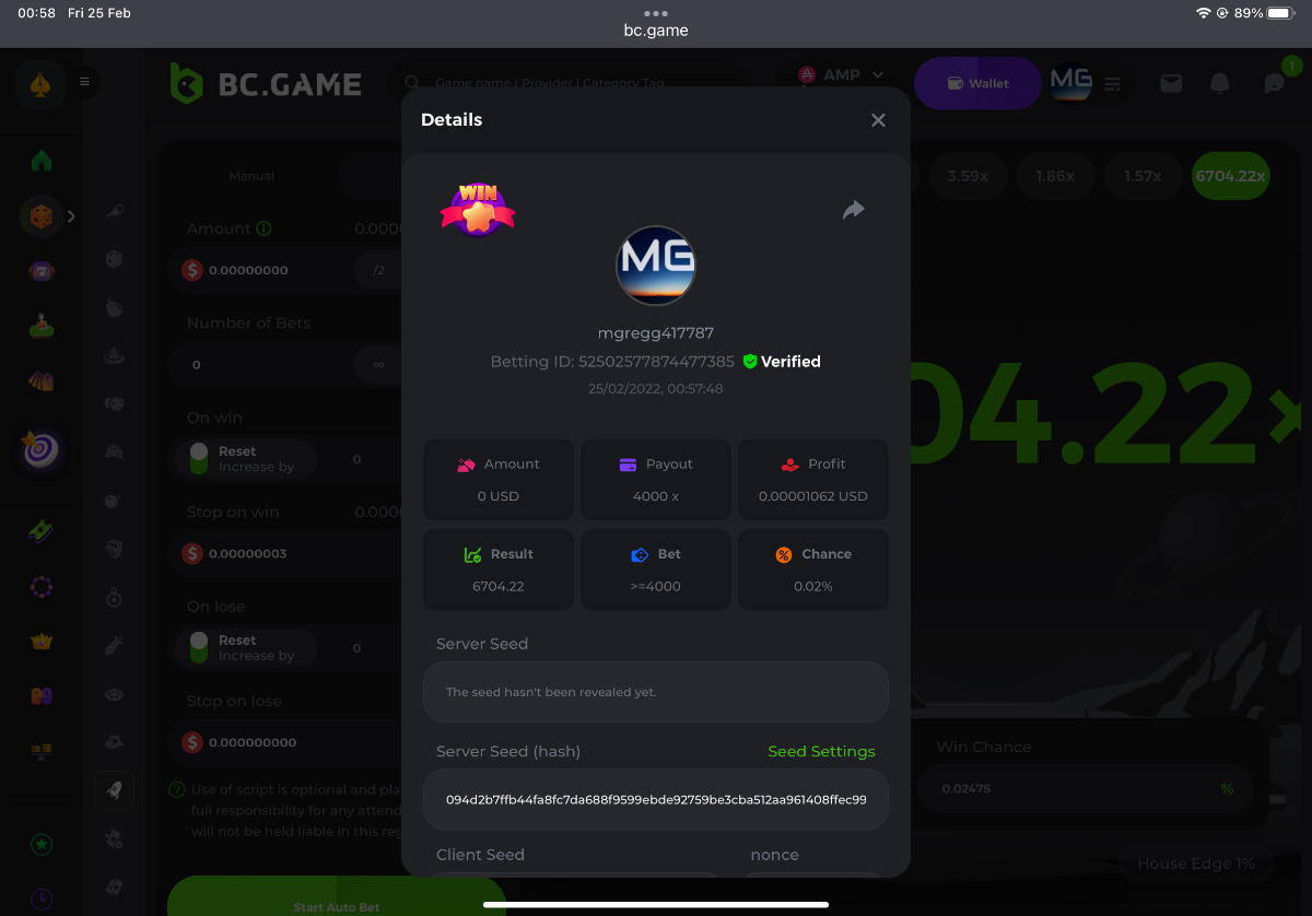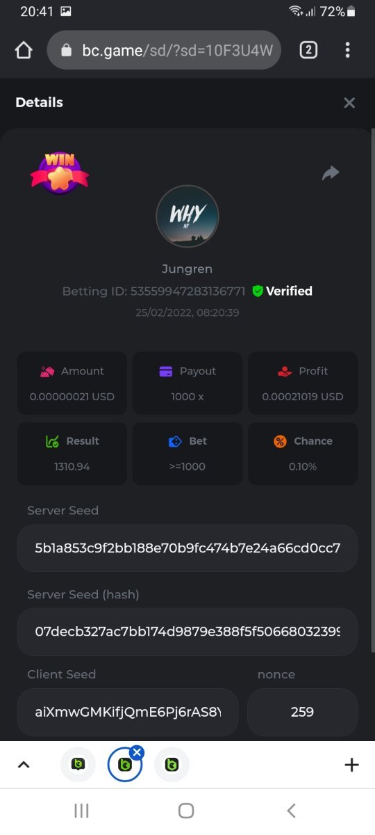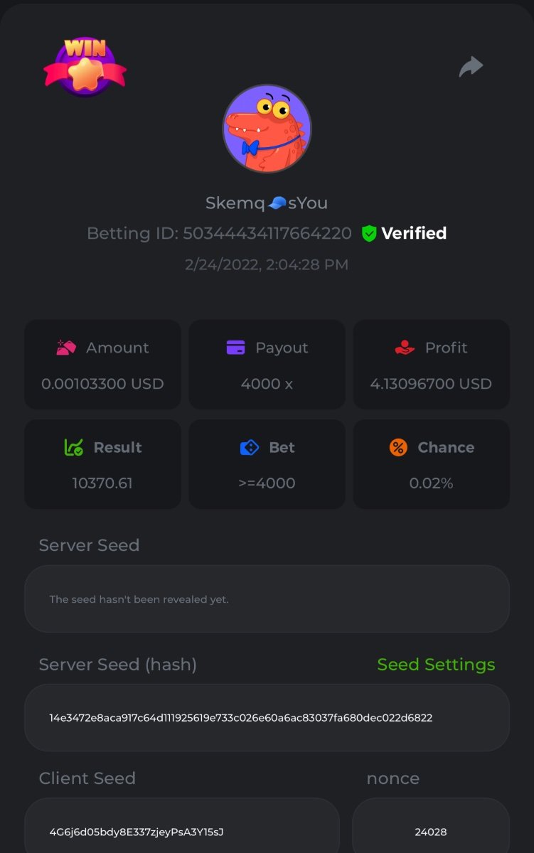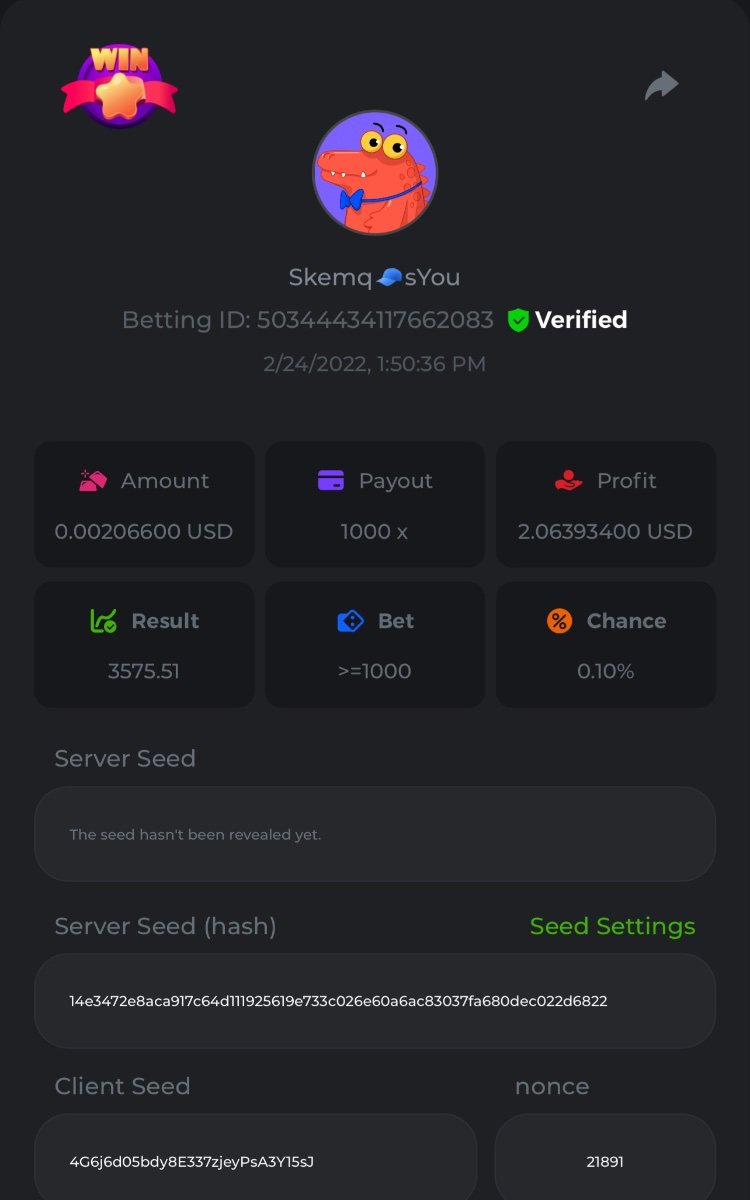 • In the same post, upload a screenshot of your win by clicking the game ID WITH VIEW IN USD mode ENABLED (accessible at the bottom of dropdown menu for your wallet up top, and Submit Reply. Done! This way, we can ensure that your bet indeed met the minimum requirement at the time of placing it: