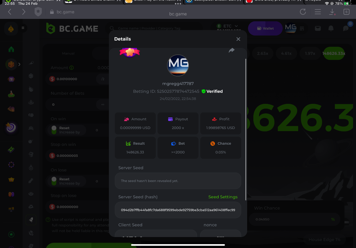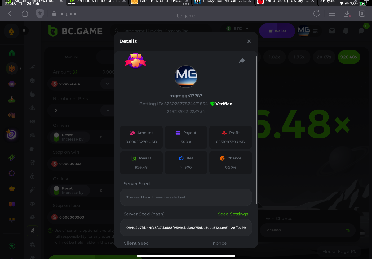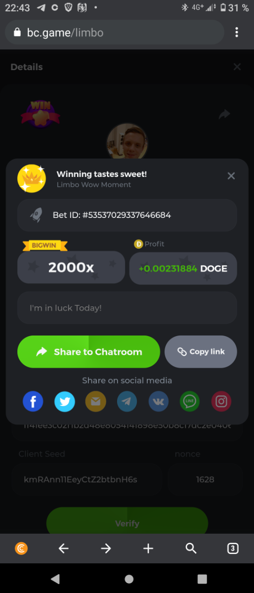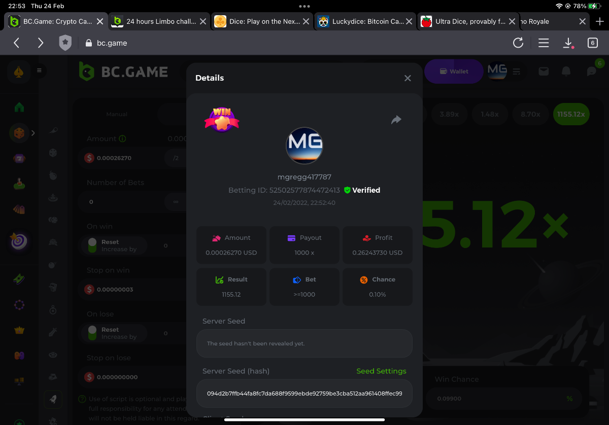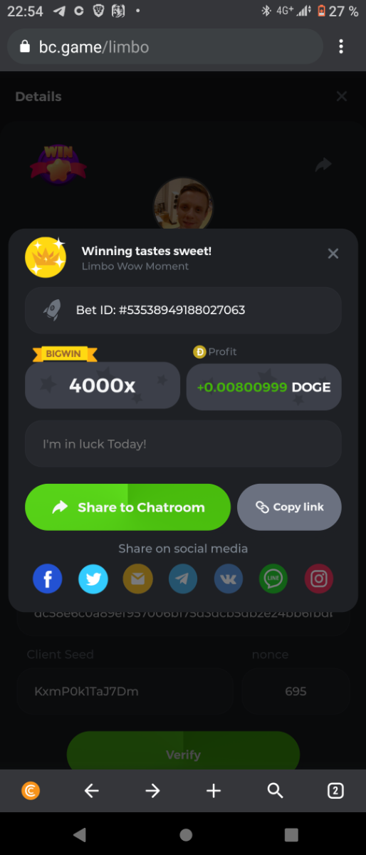 • In the same post, upload a screenshot of your win by clicking the game ID WITH VIEW IN USD mode ENABLED (accessible at the bottom of dropdown menu for your wallet up top, and Submit Reply. Done! This way, we can ensure that your bet indeed met the minimum requirement at the time of placing it: