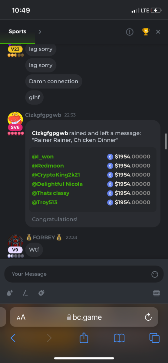 My favorite memory so far while playing at BC.game started march 31st 2022. I was playing European Roulette. My brother sent me a deposit that day. Started off with a balance of $650 USD. While trying to come up with a strategy to play i started to get a feel for what numbers were going to hit. I slowly increased the amount i was betting on one single digit number on European Roulette. I made a goal to stop at $10000 if i made it that far. Suprisingly i got a win back to back that was huge. I was clicking fast and went past my goal. So i decided to share the extra money i won to chat.